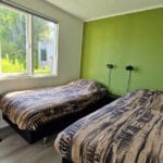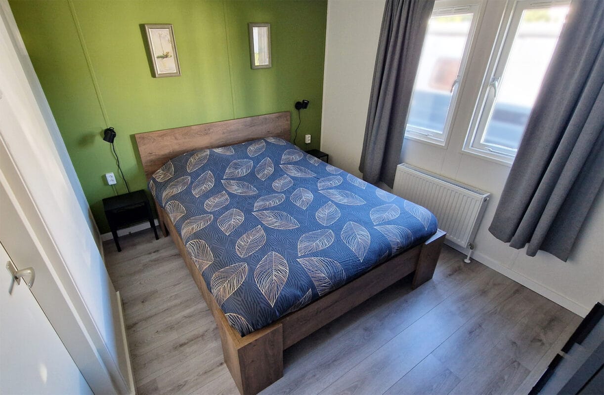 Binnen vind je twee slaapkamers: één met een ruim tweepersoonsbed (160×200 cm) en een tweede kamer met twee eenpersoonsbedden (90x200cm), ideaal voor vrienden, familie of kinderen.